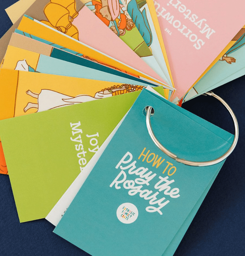 TEACH YOUR KIDS THE BEAUTY OF THE ROSARY!Guide your family through the life of Christ while learning the prayers of the rosary.This pocket-sized rosary ring includes 27 cards that depict the Joyful, Luminous, Sorrowful, and Glorious Mysteries of the rosary through hand-drawn illustrations in vivid colors. Deepen your understanding of each mystery with a simple meditation and scripture references. 27 cards
