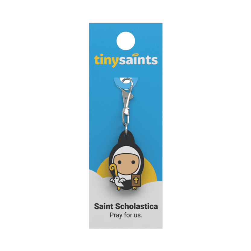 Scholastica, twin sister of Saint Benedict, founded a community of women religious. The siblings met once a year, halfway between their monasteries, for a day of holy conversation. On one occasion, Scholastica begged Benedict to stay unusually late. He refused, but she prayed, and a storm arose making travel impossible. Three days later, Benedict received a vision of her soul flying to heaven in the form of a dove.